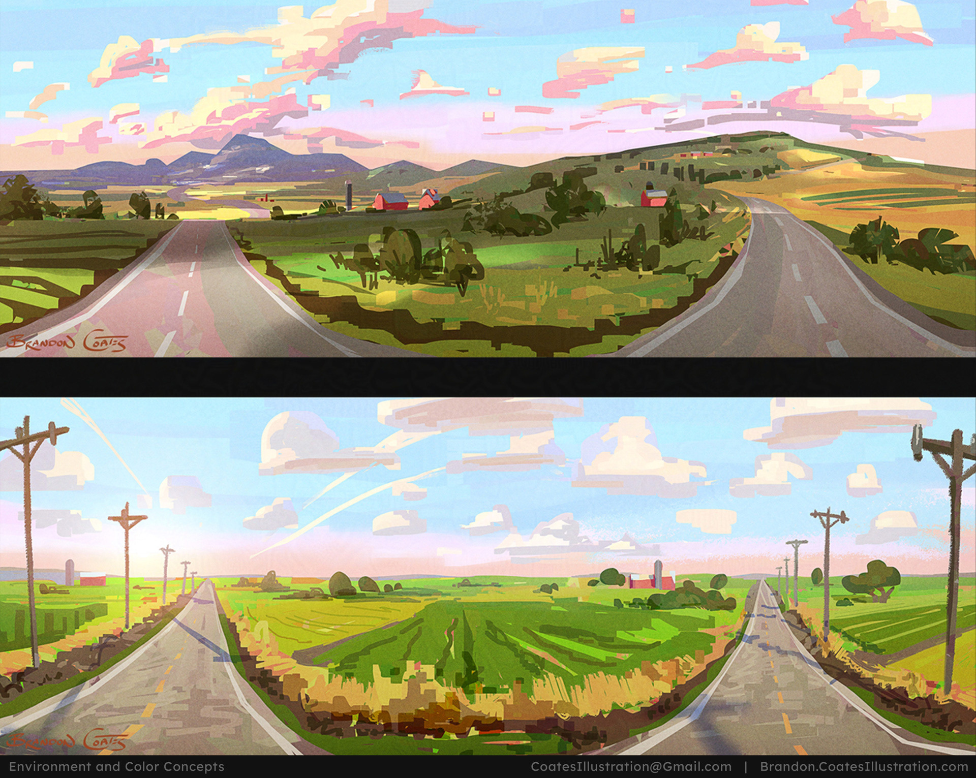 Color and lighting concepts developed to guide matte painting, environment design, and overall visual mood across multiple projects.