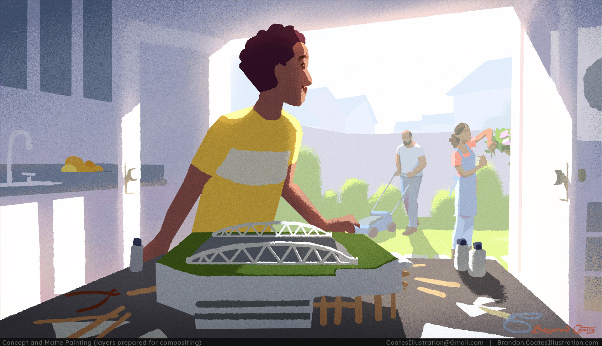 I was the lead environment designer for the animated short advertisement below. I created concepts, paintovers, finished designs, and background paintings to be used in the final composite.